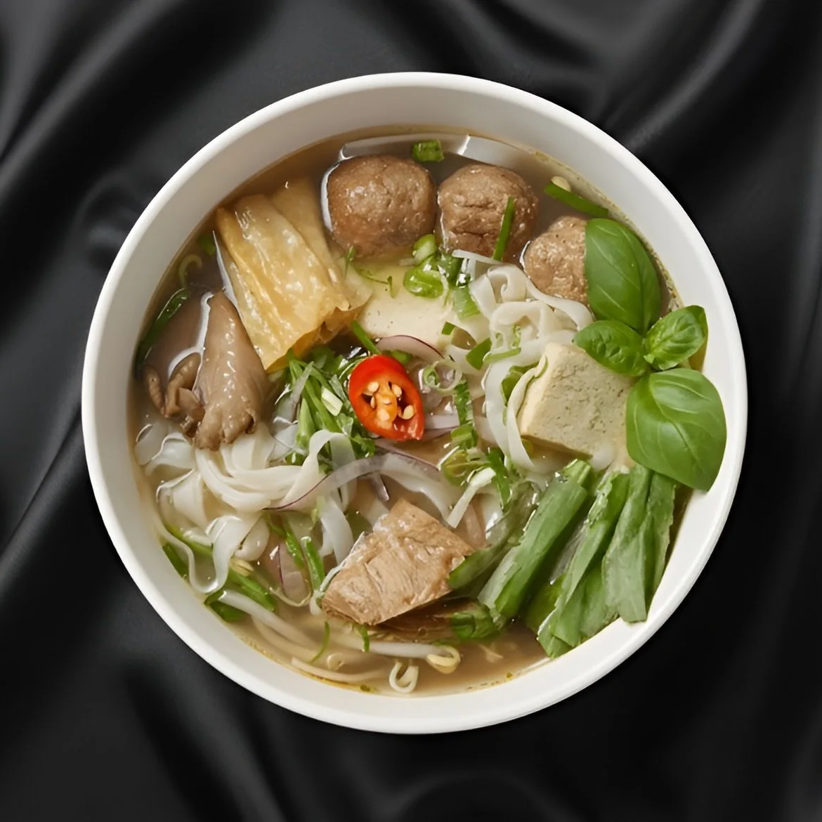 Vår signatur-Pho er ren matglede i en bolle, basert på ekte, tradisjonelt håndverk. Kraften simrer i timevis på en base av fersk gulrot, knutekål, reddik, eple og pære, noe som gir den en naturlig, dyp og fruktig umami-sødme. Bollen fylles med møre risnudler, saftig tofu, østersopp, veganske kjøttboller og vår egen proteinrike vegansk kjøtterstatning. Retten toppes med et friskt dryss av rødløk, vårløk, koriander, chili, thai-basilikum og lime for å vekke alle sansene. Comfort food på sitt aller beste!